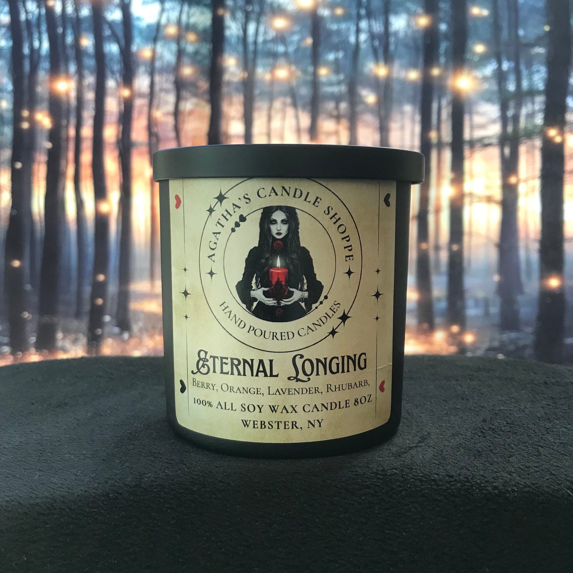 When Eternal Longing is lit, it will carries a forbidden tale of unfulfilled desire. The sharp bite of rare cloudberries, cuts through the cold air, a fleeting temptation lost to the tide. A hit of blood orange zest stirs bright, yet sinister, igniting an aching hunger, while rhubarb whispers promises of sweetness laced with bitterness. The wild lavender trembles like the ghost of a love long gone, haunting the senses with its mournful grace. Beneath the surface, the faint hint of driftwood and amber coil together, a darkly grounded warmth that draws you in, only to leave you wanting more. Finally, a light suggestion of musk settles like a thick fog, heavy with secrets and unsaid words, clinging to the skin with a lingering touch. This candle is not merely a scent; it is a spell, a yearning wrapped in darkness, destined to haunt those who dare to light it.